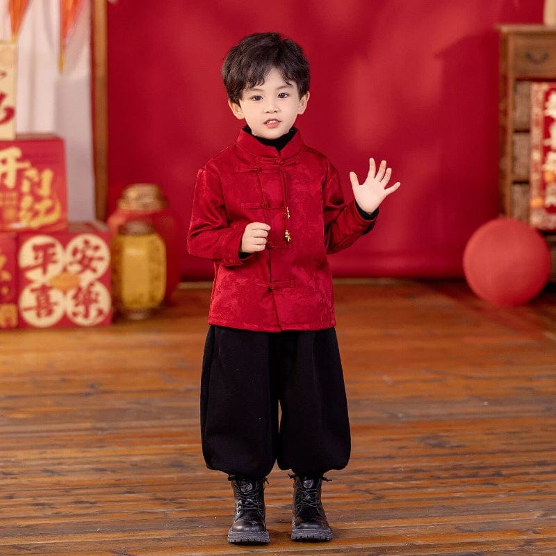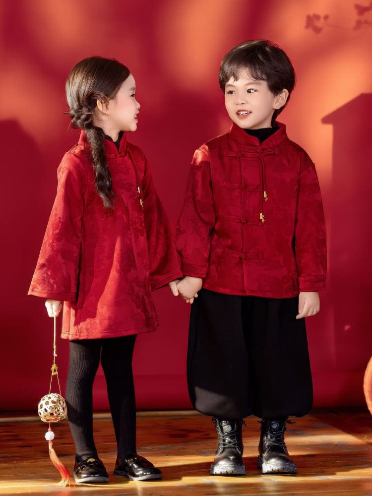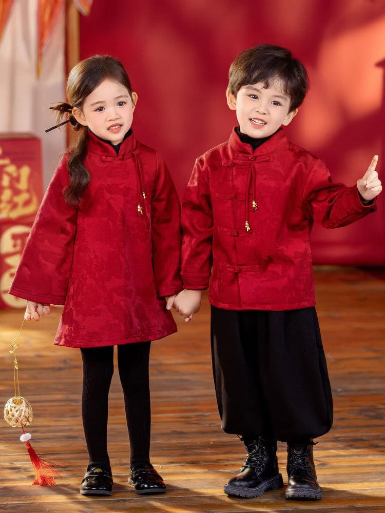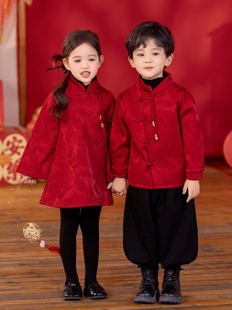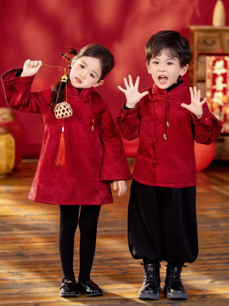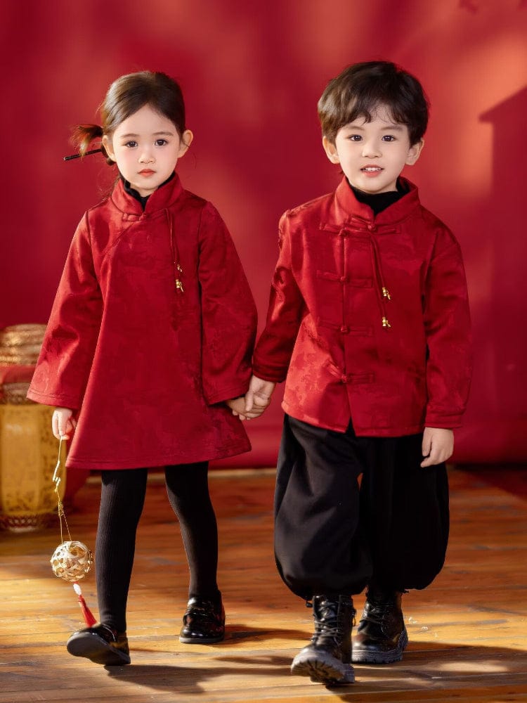 Chinese new year outfit for kids, wine red Tang suit&Qipao