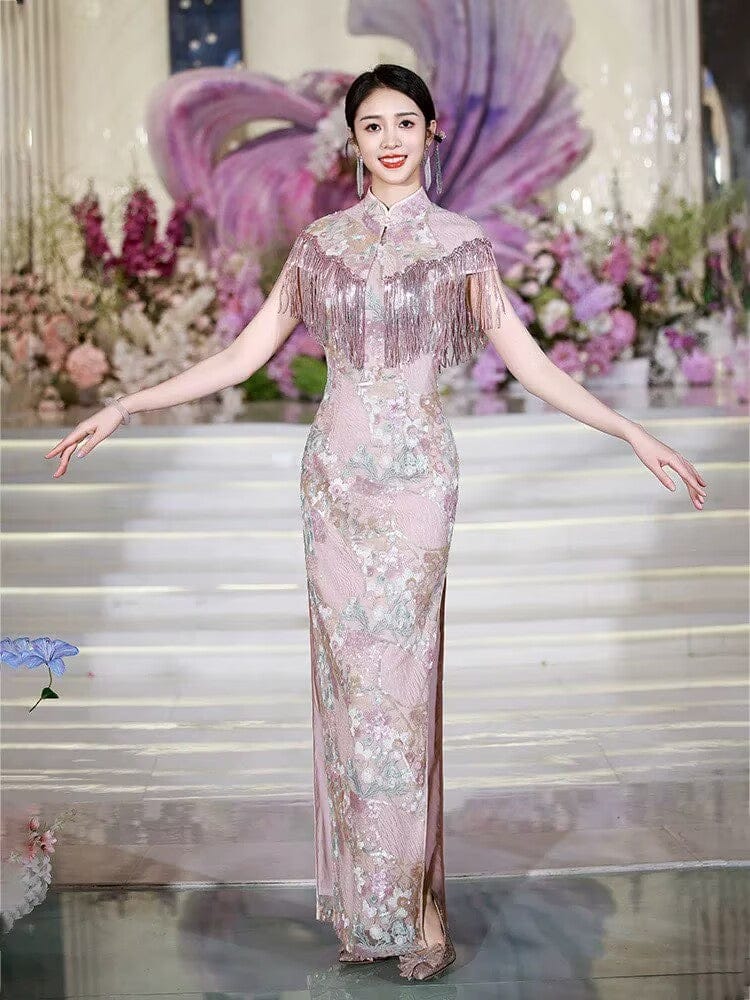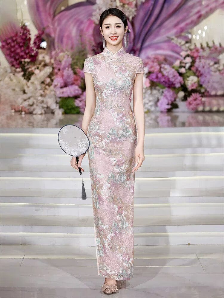 Plus size, Floral pattern, wedding pink long Cheongsam