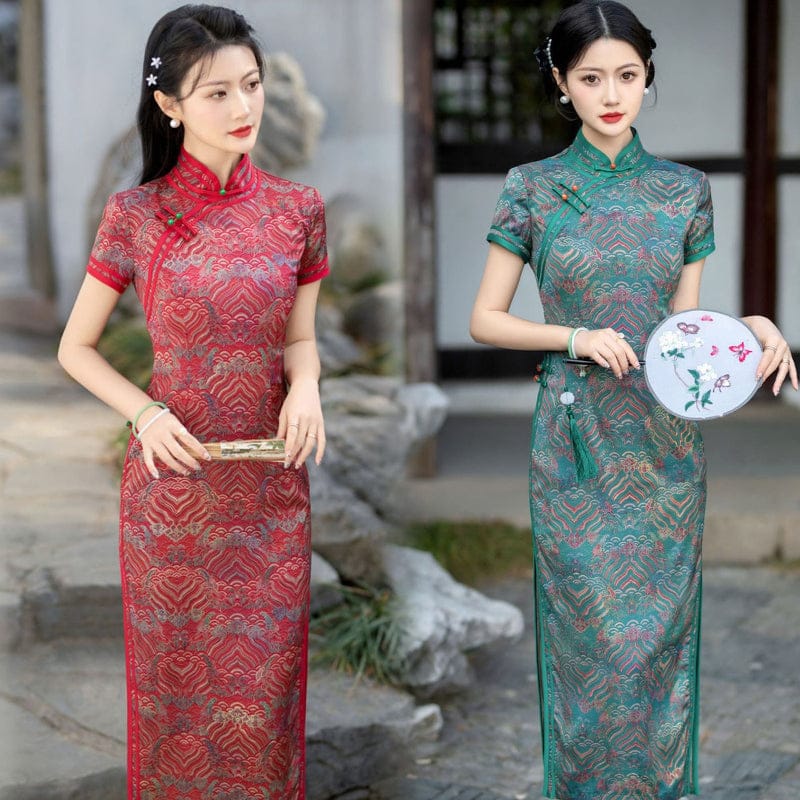 Auspicious Cloud Pattern, silk long Cheongsam