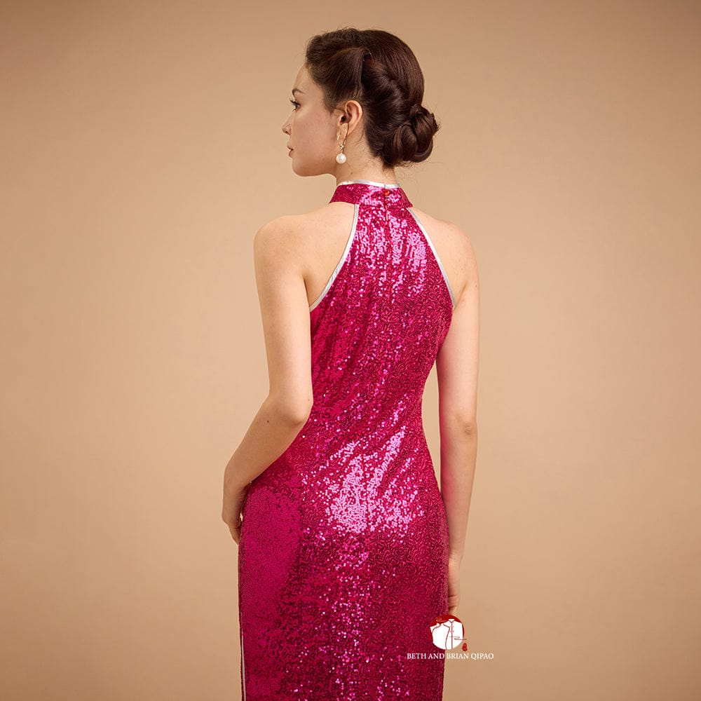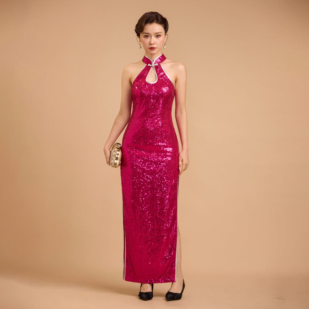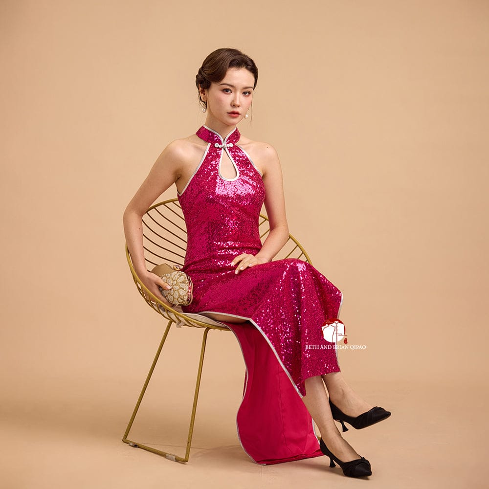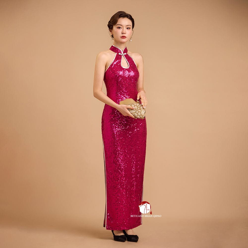 Exclusive designer collection, Fuchsia sequins long Cheongsam