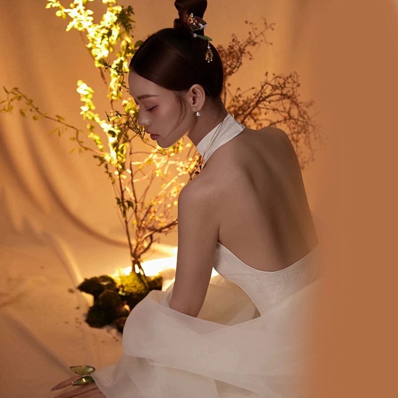 New Chinese style (新中式), high-end, halter style long Qipao set