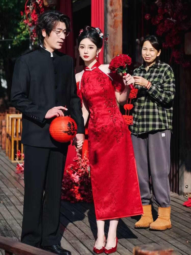 New Chinese style (新中式), Halter wedding midi Cheongsam