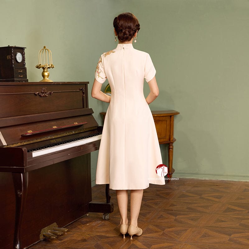 Exclusive designer collection, Peacock embroidery, A-line midi Qipao